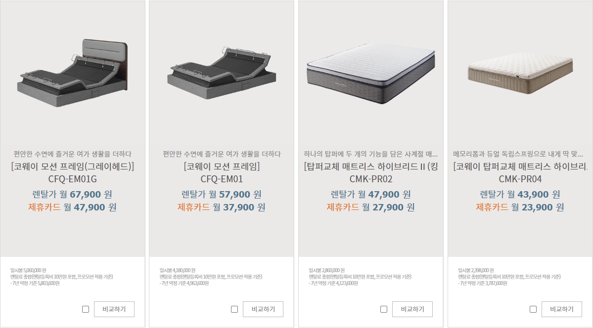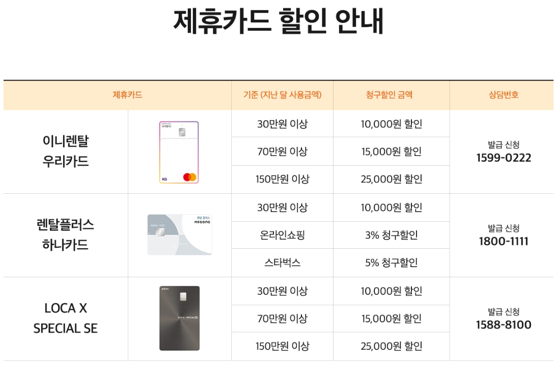 - 제휴카드를 통해 할인혜택을 받아 렌탈가격을 낮출 수 잇음