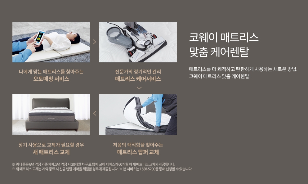 가정에서 필요한 정수기를 포함하여, 매트리스 등의 렌탈 서비스를 하고 있는 브랜드이고