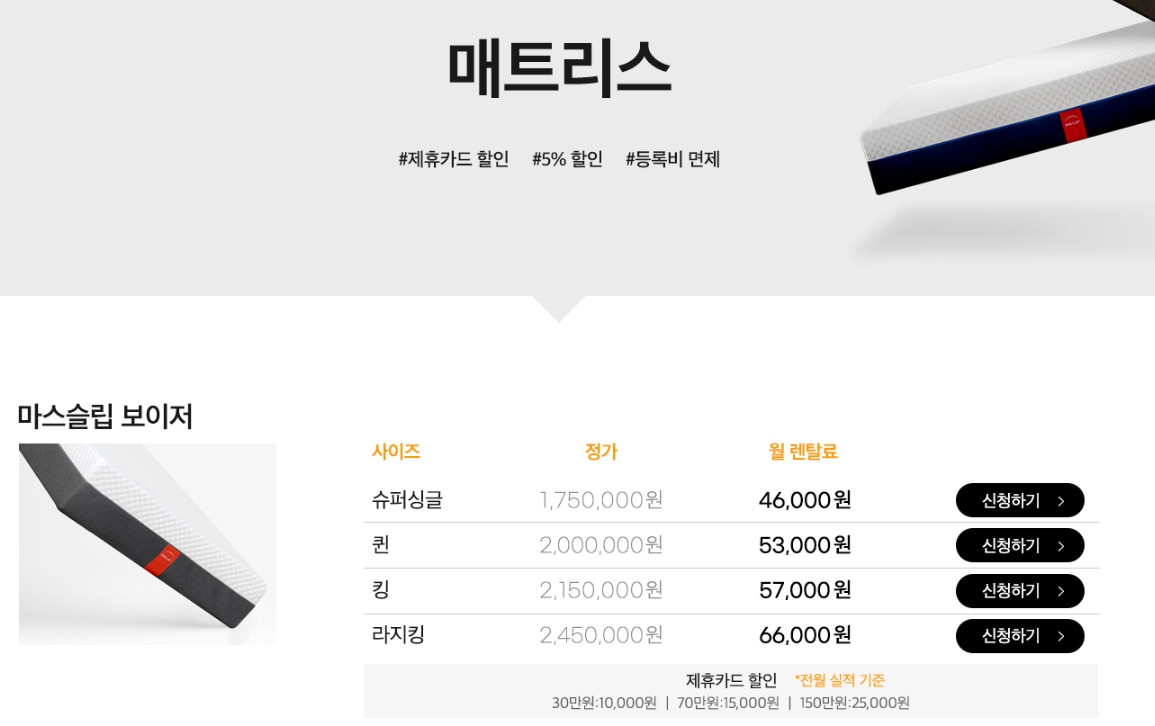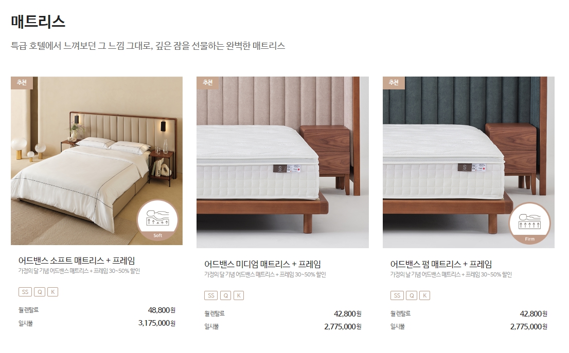 - 제품의 기능적인 부분보다는 렌탈서비스에 집중을 하고 있음(매트리스 제품력이 아쉬움)